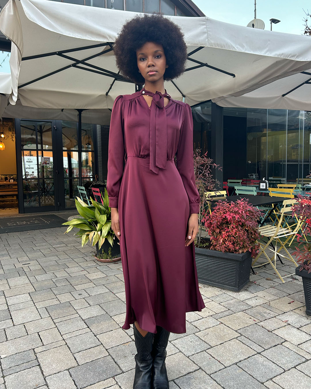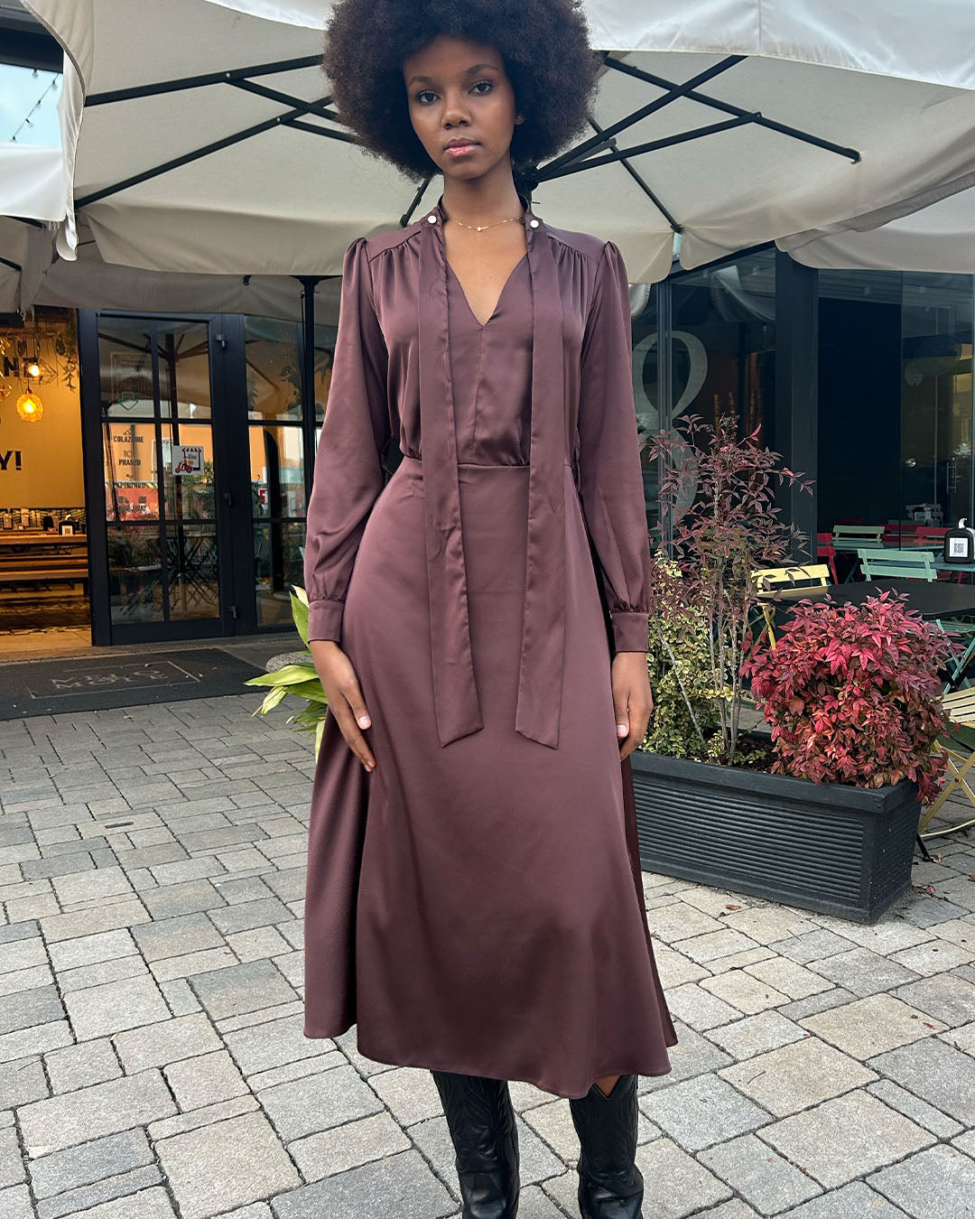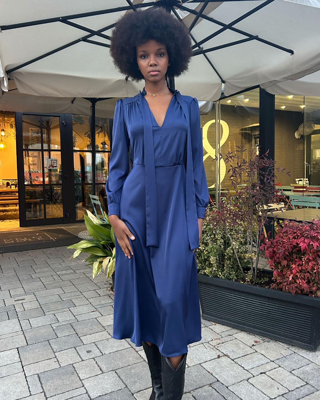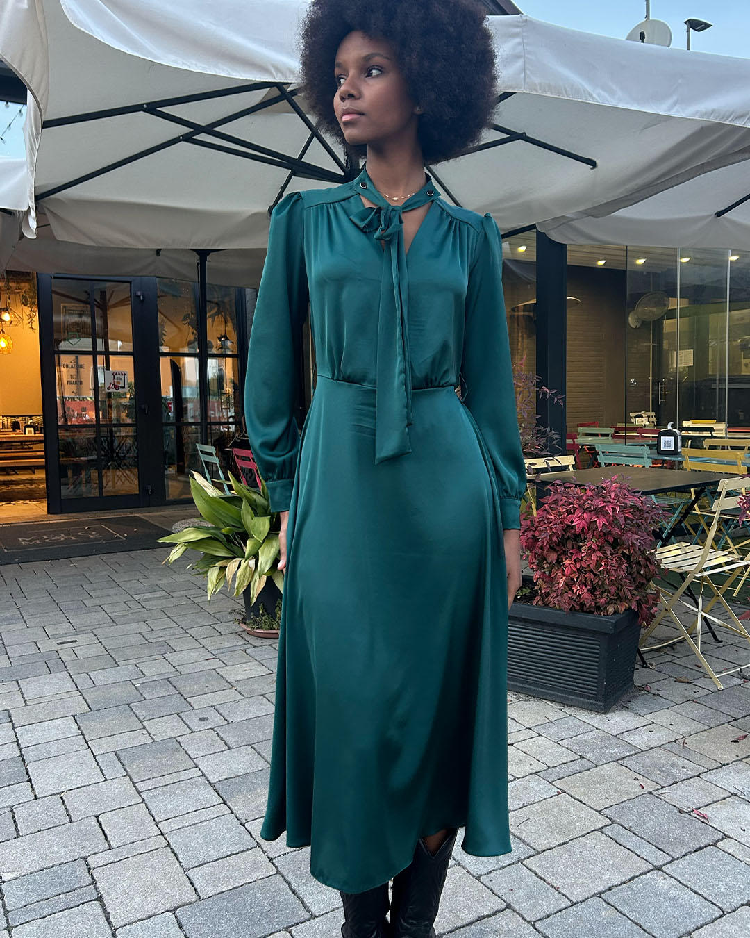 Abito midi effetto raso elegante con lacci rimovibili - Made in Italy - dettagli sartoriali