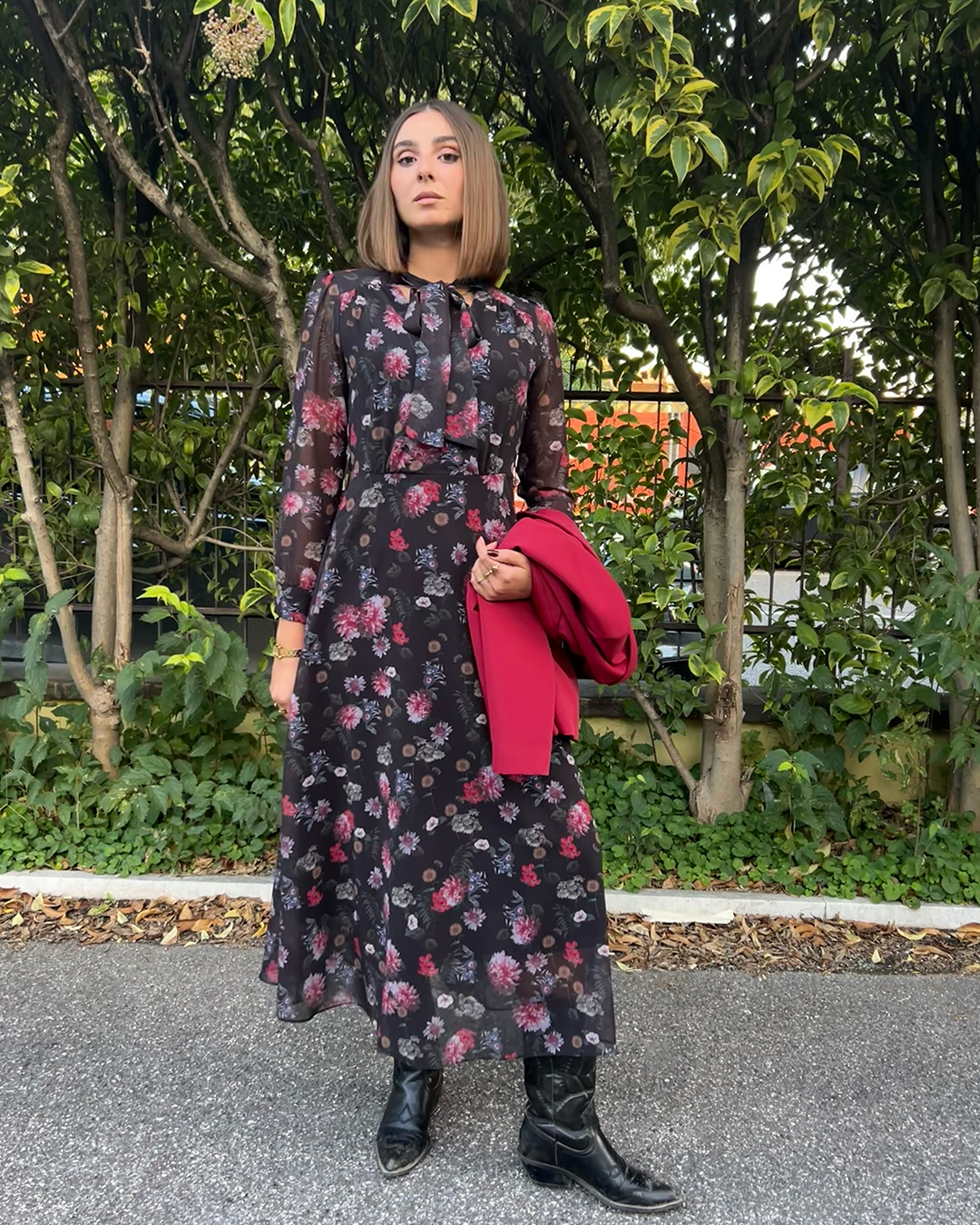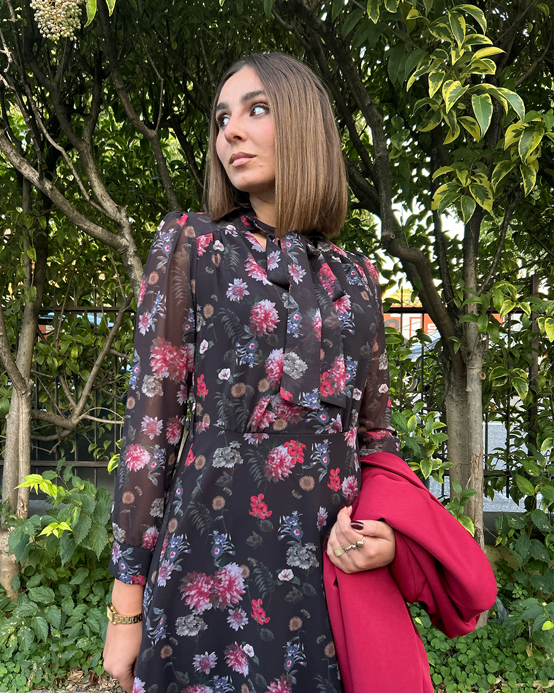 Abito a maniche lunghe con fiocco sulla scollatura - Made in Italy