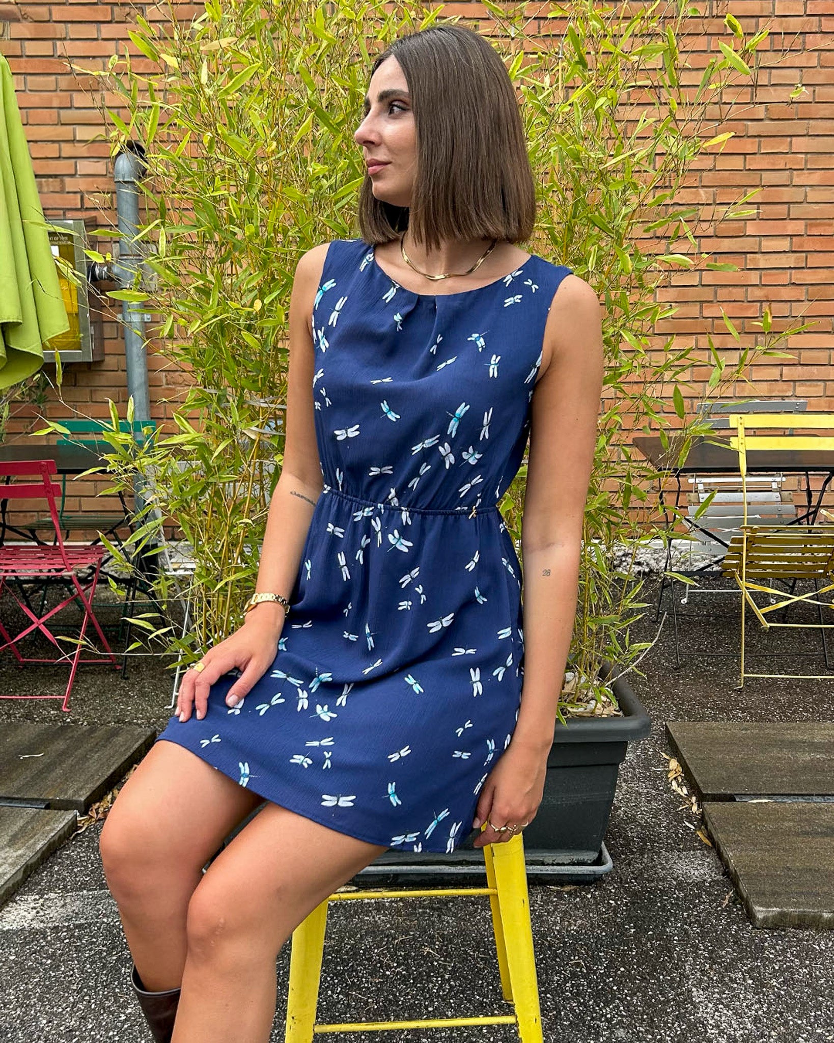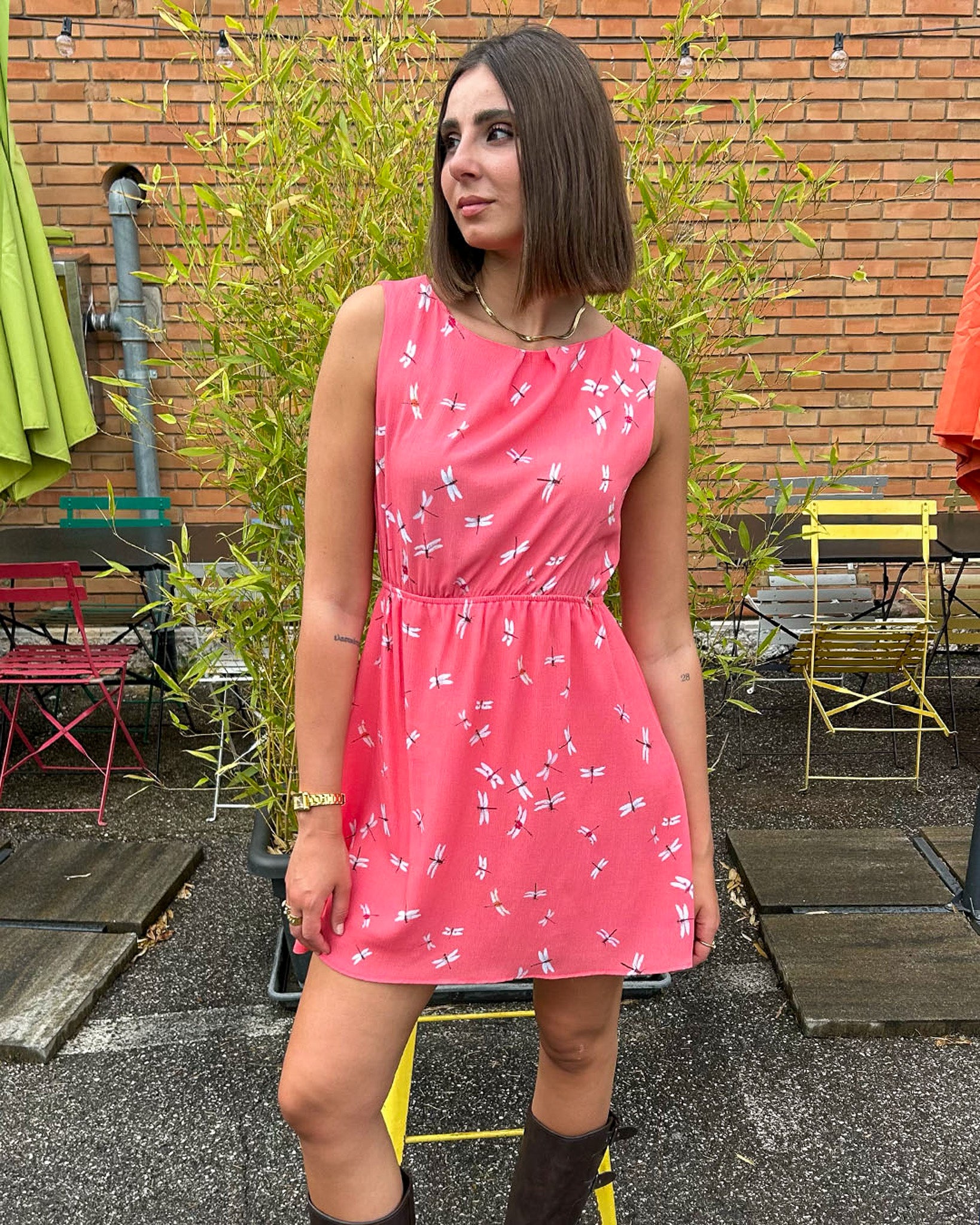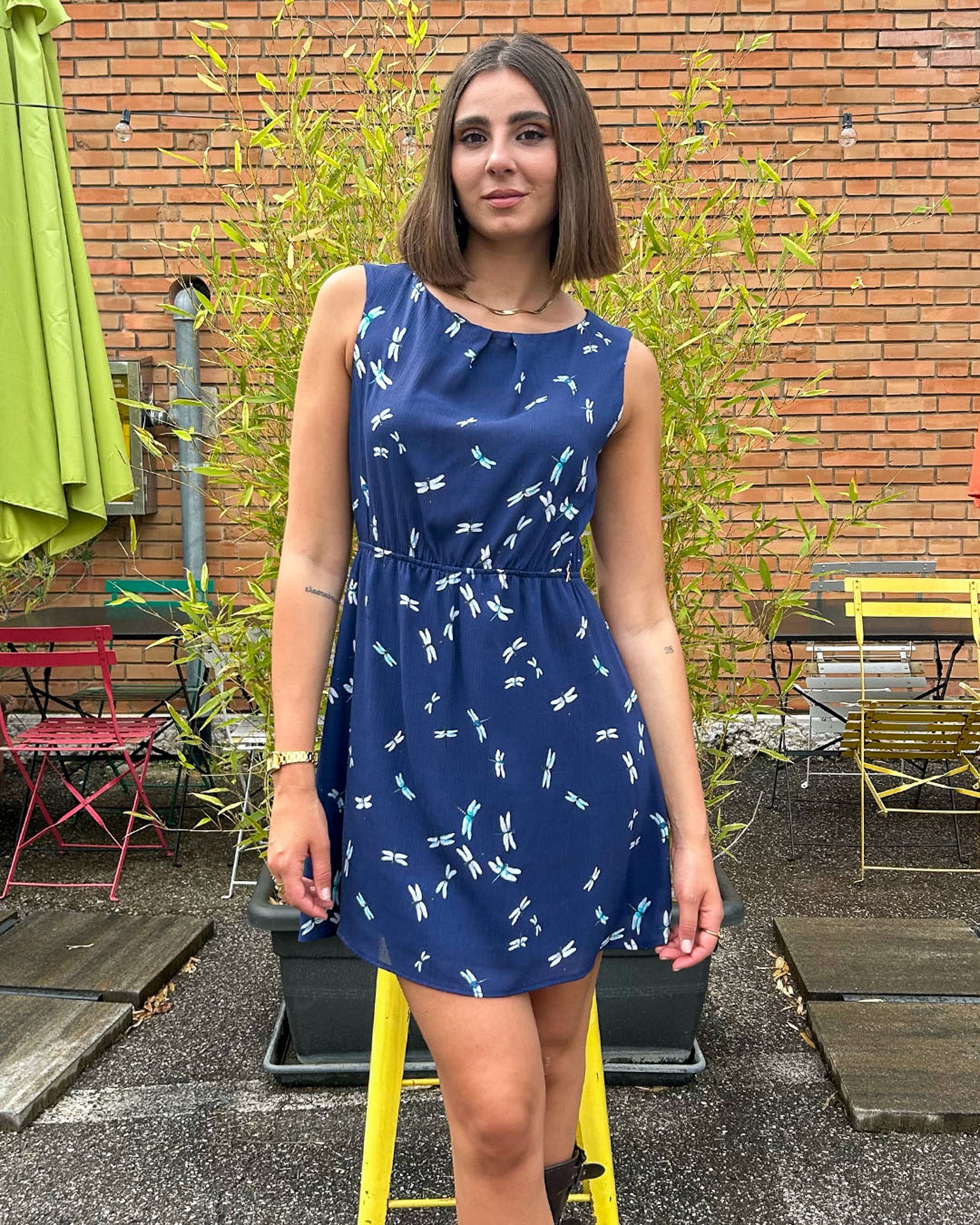 Abito Viscosa con fodera, fantasia libellula - 100% Made in Italy