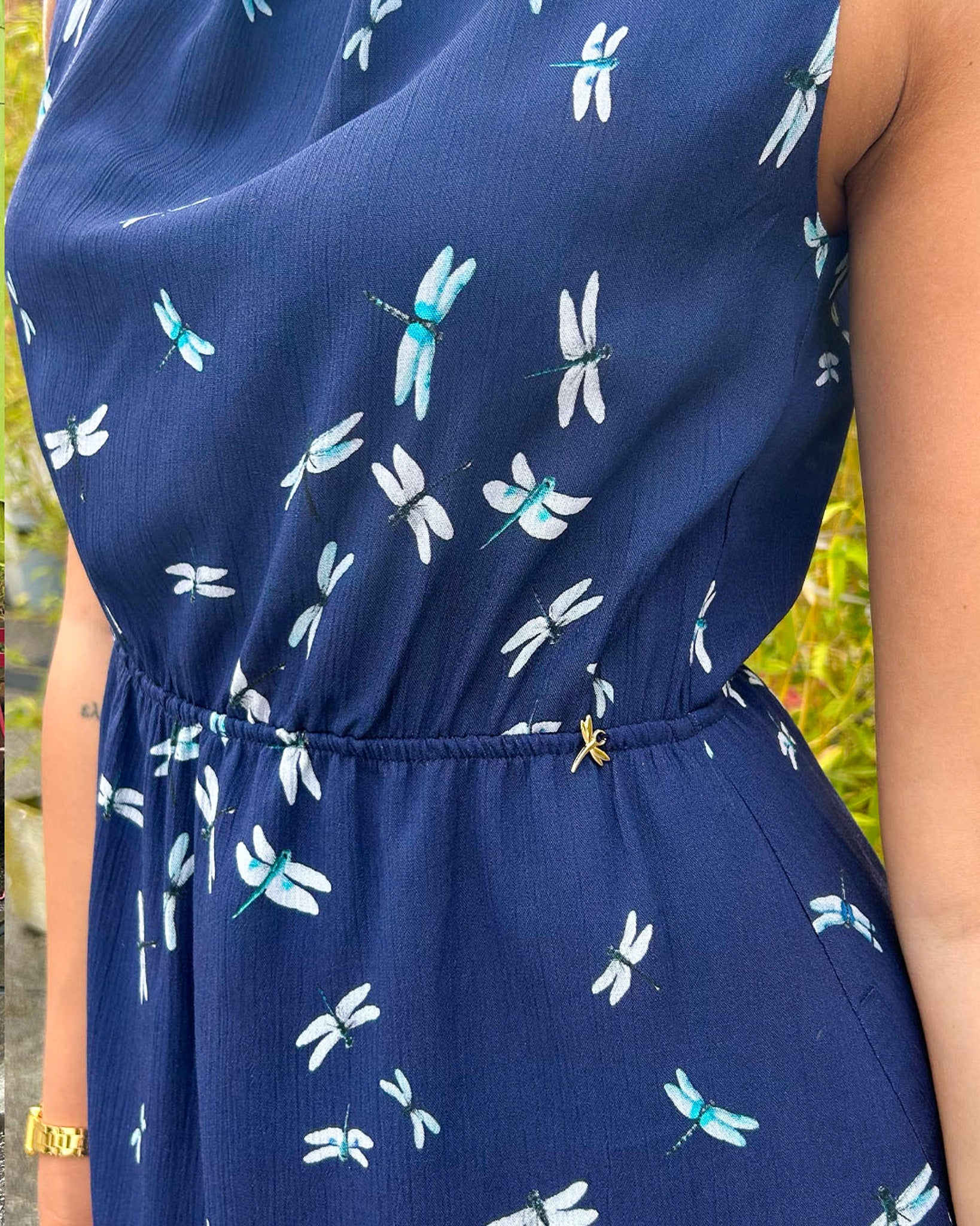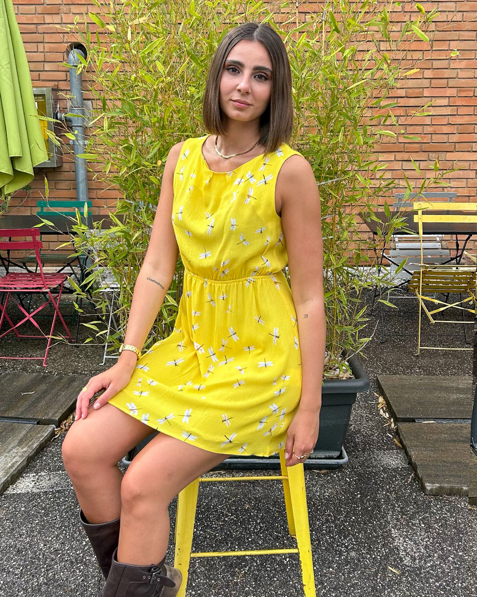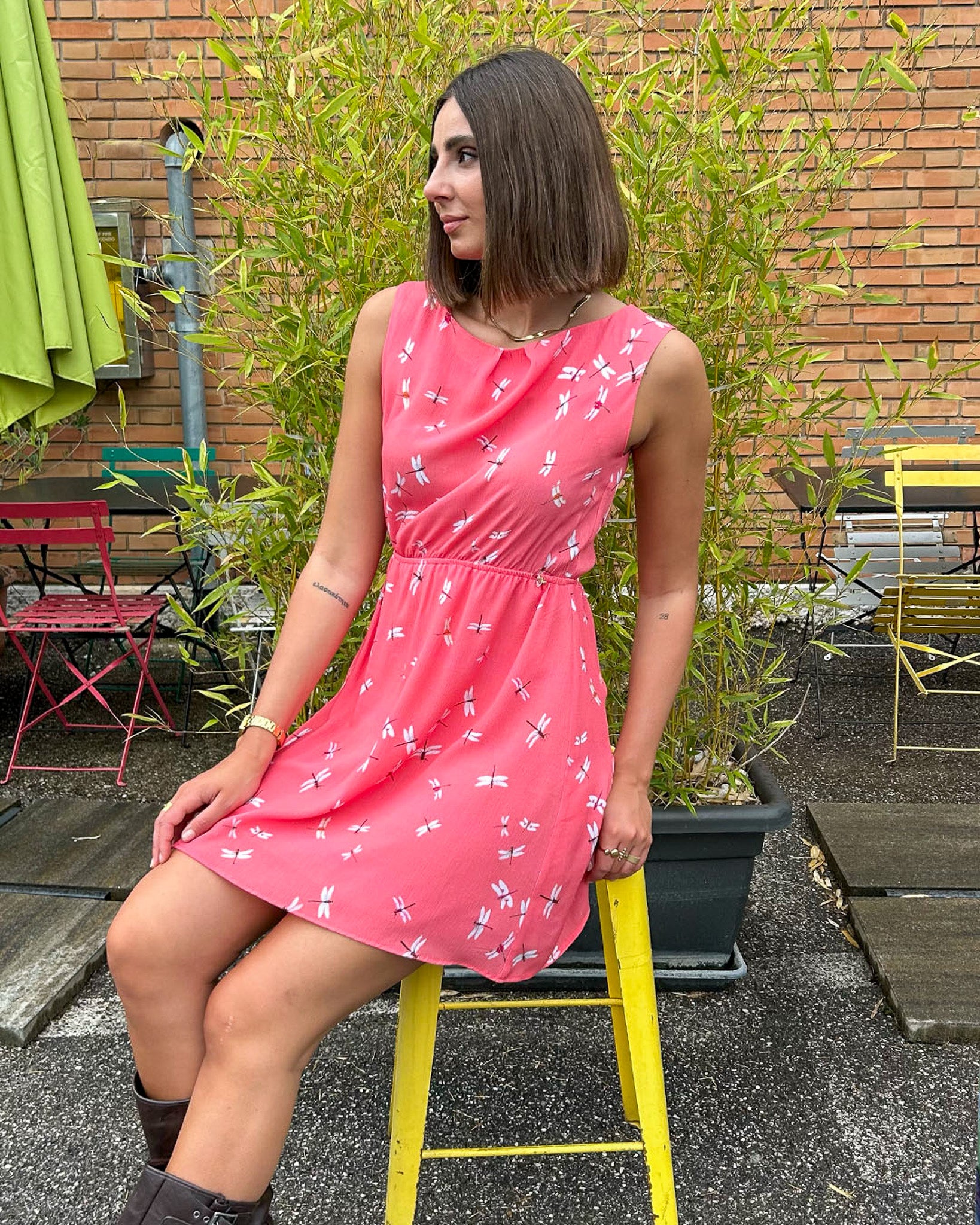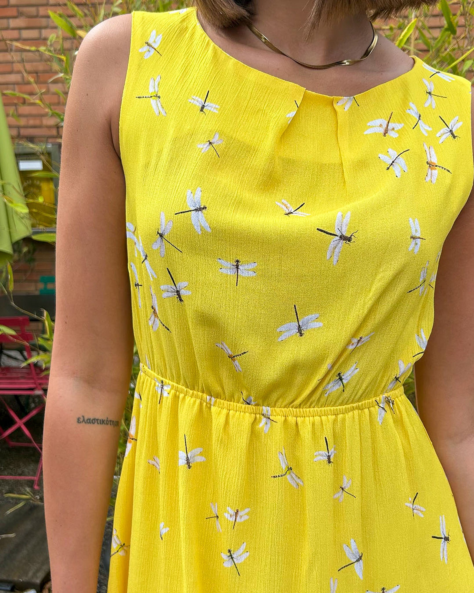Abito Viscosa con fodera, fantasia libellula - 100% Made in Italy